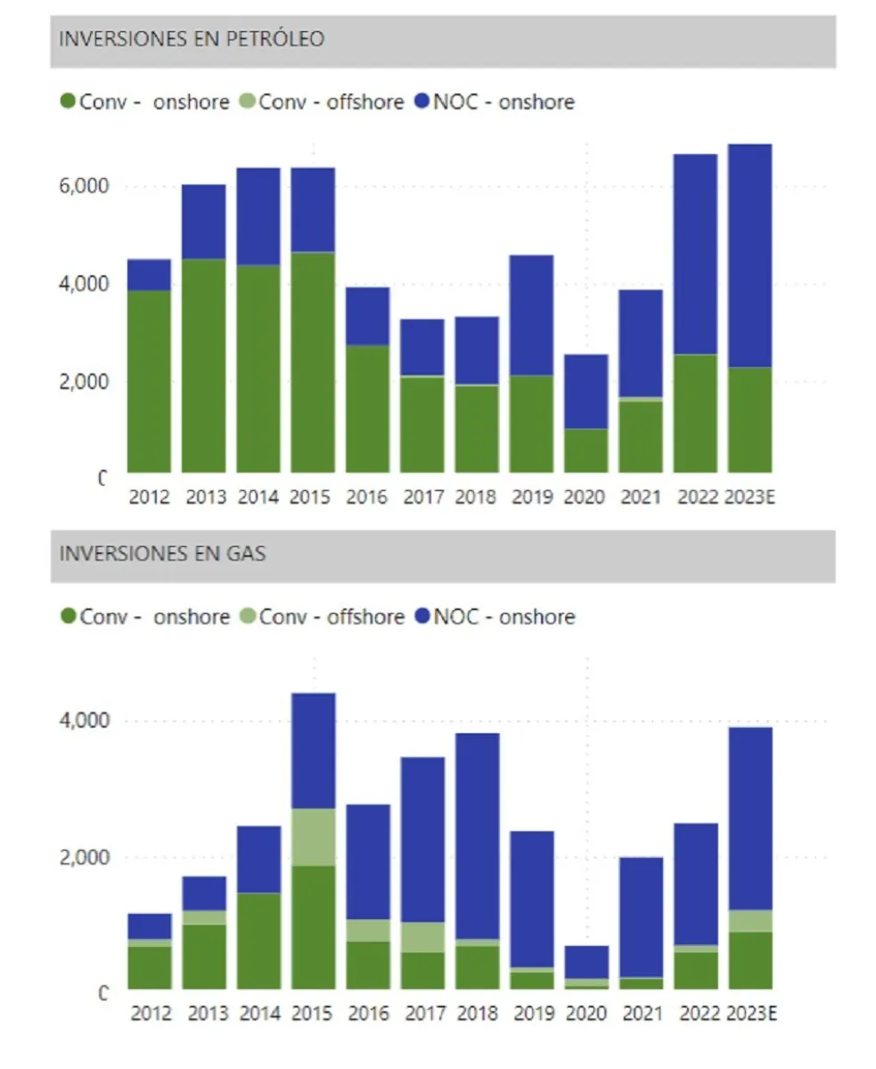 Según la información presentada por las empresas a la Secretaría de Energía de la Nación, las inversiones en Upstream a nivel nacional en 2022 fueron de 9146 millones de dólares y se espera que asciendan a 10.761 millones de dólares en 2023.